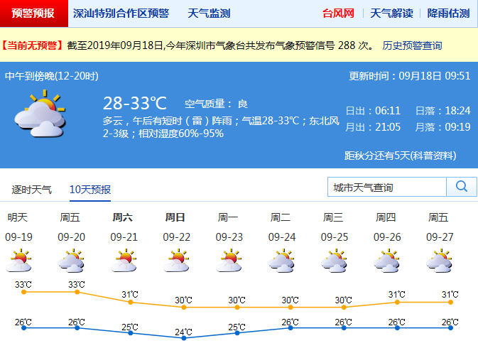 見圳客戶端·深圳新聞網2019年9月18日訊 你期盼的降溫就要到來了。來自氣象臺的消息,本周末21日起,北風加大,深圳氣溫會有下降。