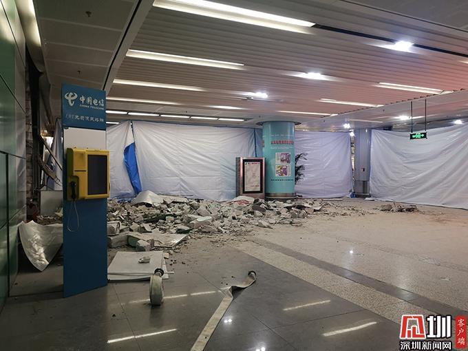 記者在事故現場看到,受損車輛已經被拖走,大廳內一地瓦礫