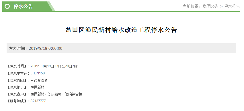 原標題:做好準備!19日至20日福田、鹽田這些地方將停水