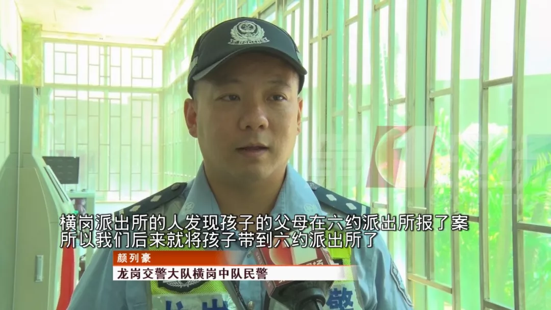 這個月18號下午五點四十分左右,龍崗區橫崗交警中隊的民警和負責協助的一名義工,正在橫崗大廈開展晚高峰的疏導工作。他們發現,一個七八歲大的男童在哭,孩子附近沒有大人,看著像是走失了。
