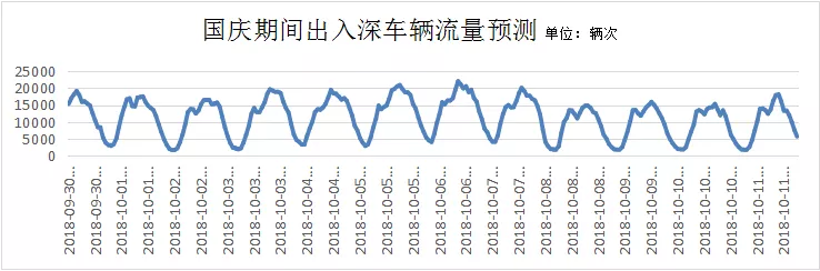 由于國慶期間高速公路免費通行,預計在10月1日的0時前將會有一波高峰。國慶期間,出入深高速公路擁堵呈現明顯的時段性及潮汐性,9月30日至10月2日為出深擁堵高峰;10月5日、6日、7日為返程擁堵高峰。