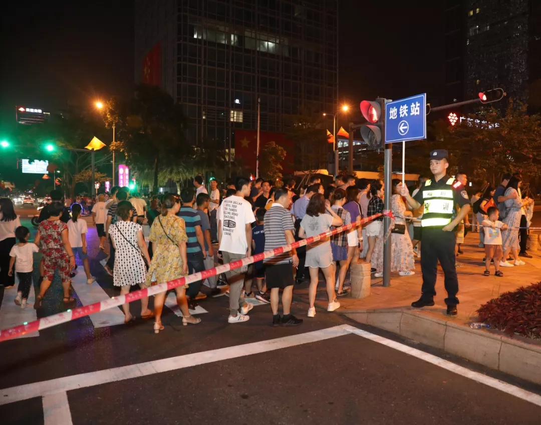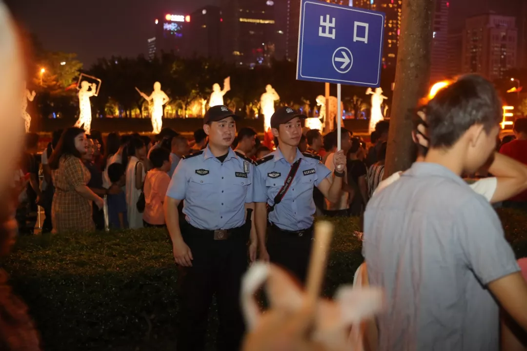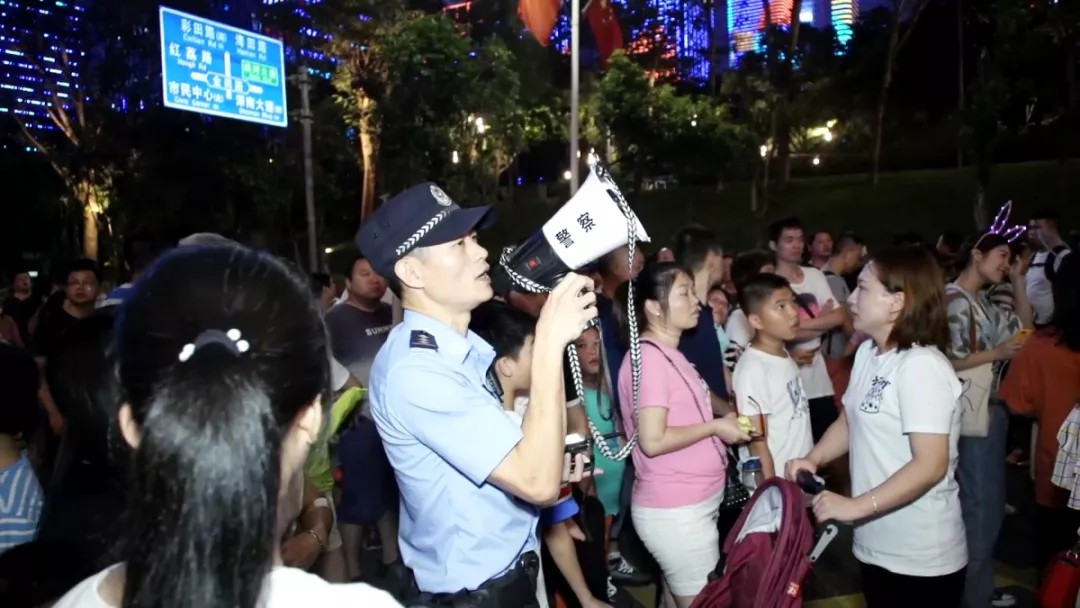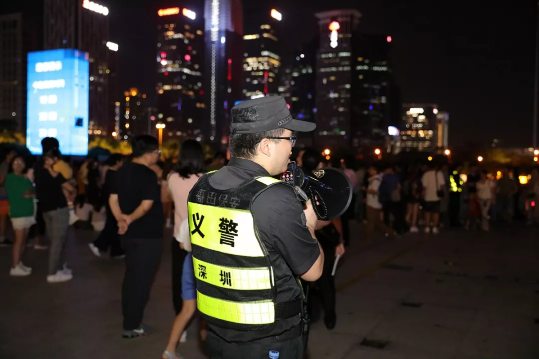 按照深圳市公安局和福田區委、區政府工作部署,福田區副區長、公安分局局長江峰帶領分局黨委班子實地勘察、前線指揮,制定安保方案,科學安排警力,設立安保聯勤指揮部,定人、定位、定責,廣大民警和隊員守土盡責、堅守崗位實時指揮調度疏導,與城管、交警、治安、公交等單位聯勤聯動,聯合管控、并肩作戰,以確保國慶燈光秀表演安全順利。