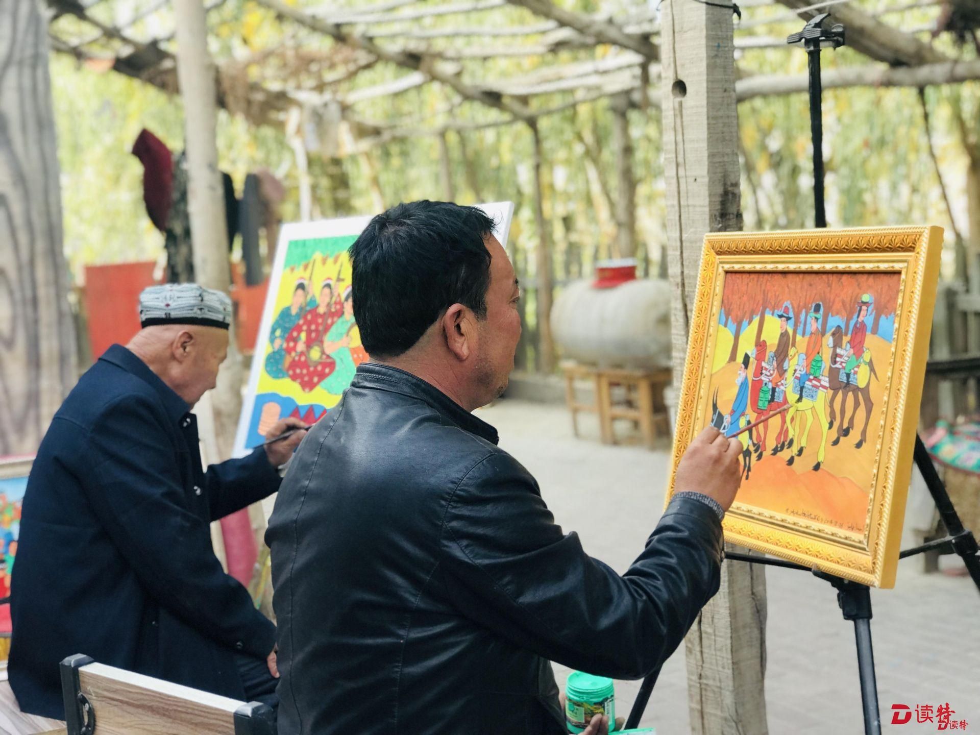 國家級農民畫畫家木卡熱埔江·艾海提告訴記者記者,他現在一年有將近45000元的收入,一部分來自于在安居房上畫農民畫,一年有30000塊錢的收入,另一部分是自己賣出的畫,一年能掙15000。“現在麥蓋提旅游的人多了,看到他們喜歡我的畫,我感到很高興,現在越畫越有勁了!”聊起麥蓋提的發展,木卡熱埔江的臉上難掩喜悅。
