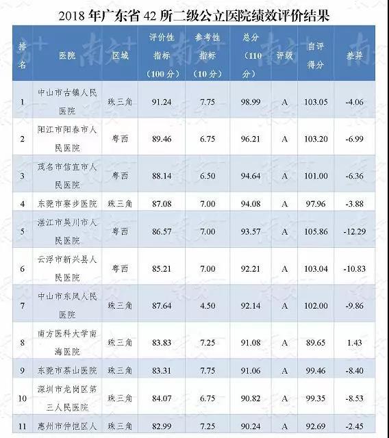 2018年廣東省42所二級公立醫院績效評價中包含深圳2家醫院,其中深圳市龍崗區第三人民醫院評級為A,深圳市坪山新區人民醫院評級為B。