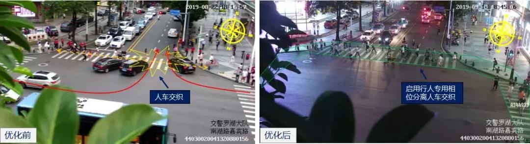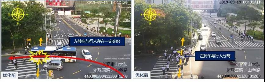 對(duì)此,深圳交警于9月11日對(duì)該路口進(jìn)行再優(yōu)化,調(diào)整東西向機(jī)動(dòng)車(chē)放行方案,分離北面行人與西面左轉(zhuǎn)車(chē),從而保障北面行人過(guò)街安全。優(yōu)化后,該路口東西行行人與同向左轉(zhuǎn)車(chē)分離,行人過(guò)街安全更有保障。