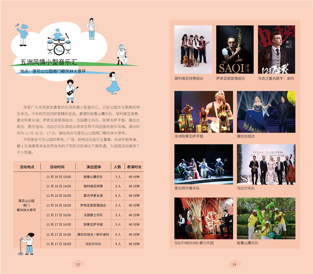 引人關注的是,本屆公園文化季首次引進街頭藝人表演,11月23日、24日,在蓮花山公園花展現場,吉他、薩克斯、笛子、笙、揚琴、中阮、二胡、雜技、魔術等各類表演藝人輪番上演節目,為市民帶來輕松、浪漫的都市生活體驗。