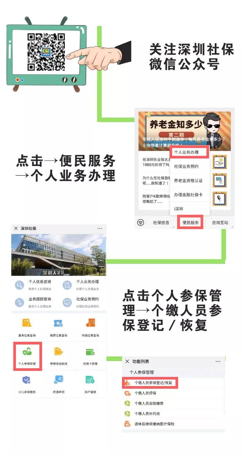 怎樣給自己參保繳費?深戶靈活就業人員有以下幾種渠道為自己參保繳費:登錄深圳市社會保險基金管理局官網(http://hrss.sz.gov.cn/szsi)上的個人網上服務系統,自助辦理。關注“深圳社保”微信公眾號,在微信上辦理。在社保自助終端機上辦理。前往社保機構的辦事窗口辦理。