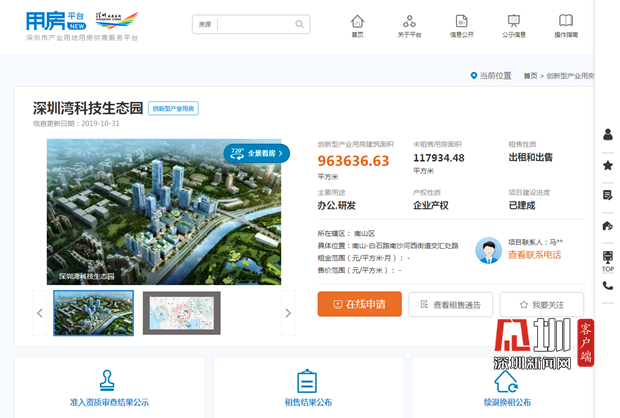 據介紹,平臺最大的亮點是匯聚了全市創新型產業用房資源,是深圳市創新型產業用房統一的信息發布和在線申請平臺。企業可以在尋找產業空間時享受一系列免費的服務:平臺統一受理深圳市企業的產業空間需求申報,并為企業全程免費提供需求跟蹤、撮合對接等服務。