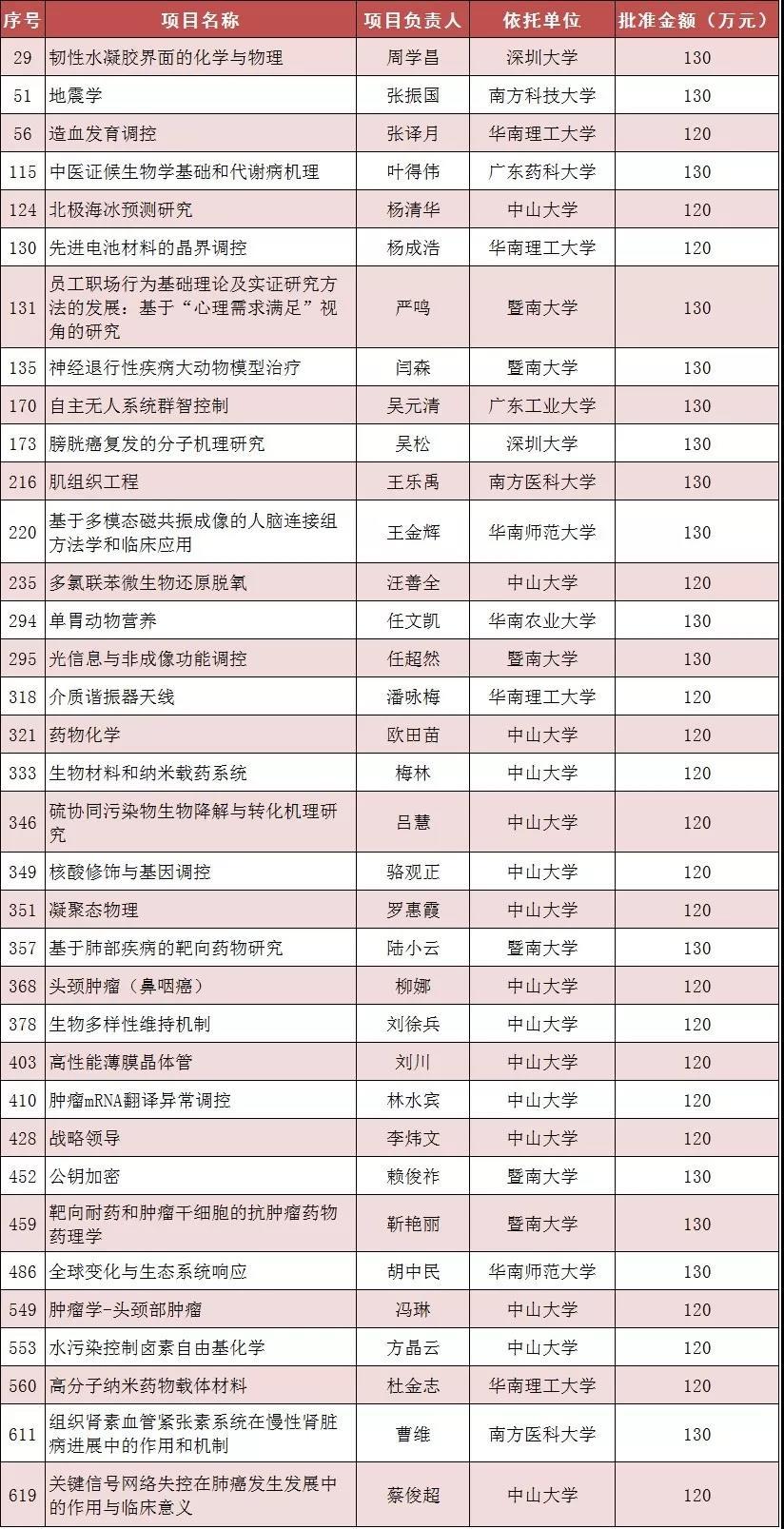 深圳大學2個,分別是:韌性水凝膠界面的化學與物理(項目負責人:周學昌);膀胱癌復發的分子機理研究(項目負責人:吳松);