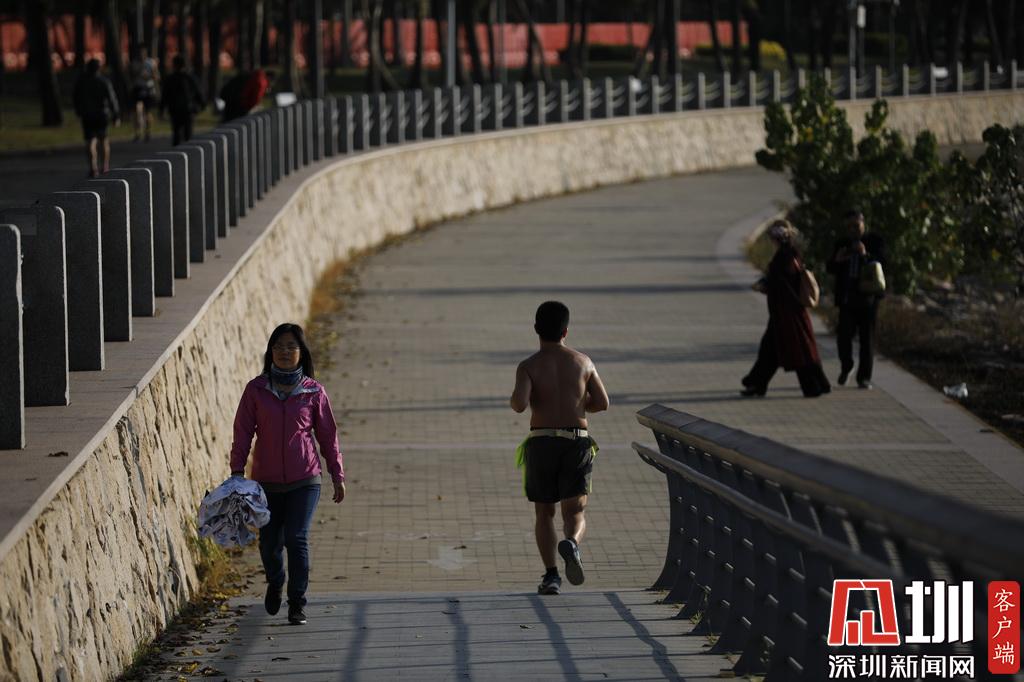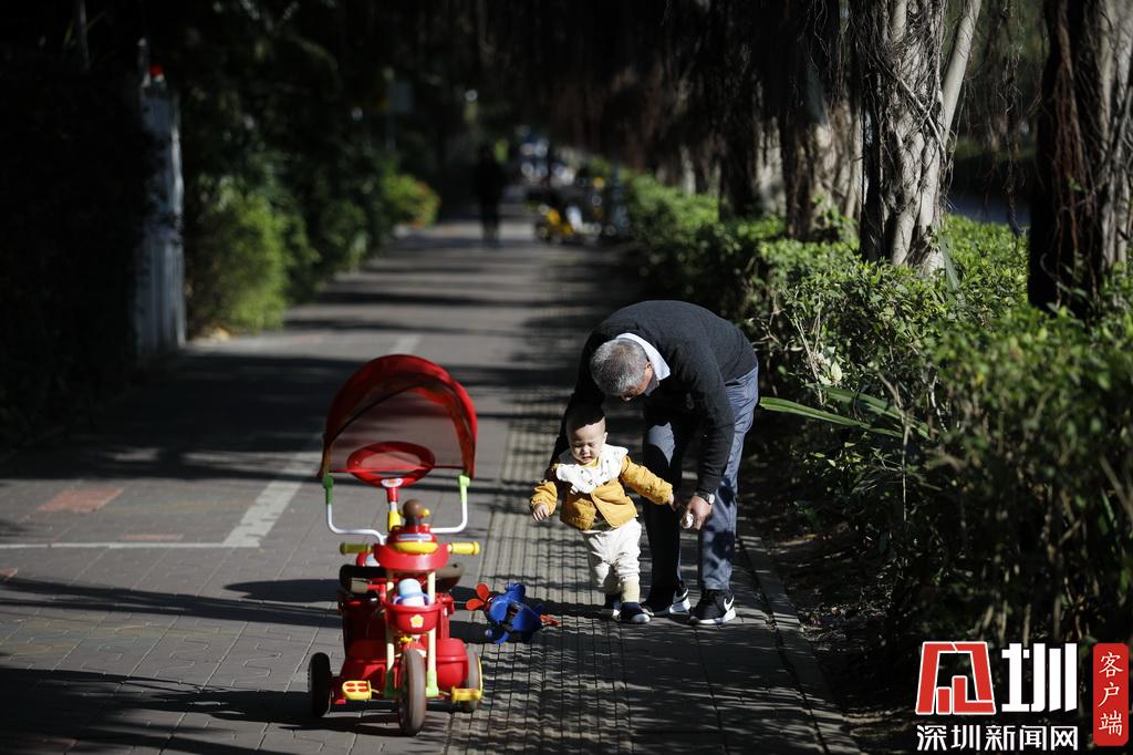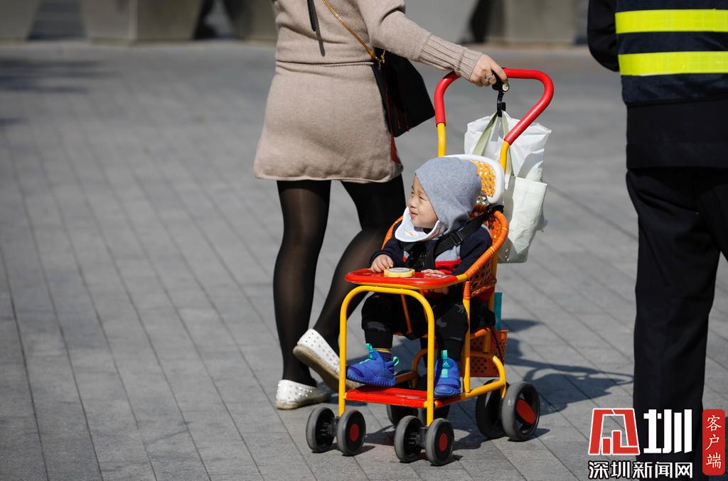 深圳南山區,出行的小朋友穿上冬裝御寒。