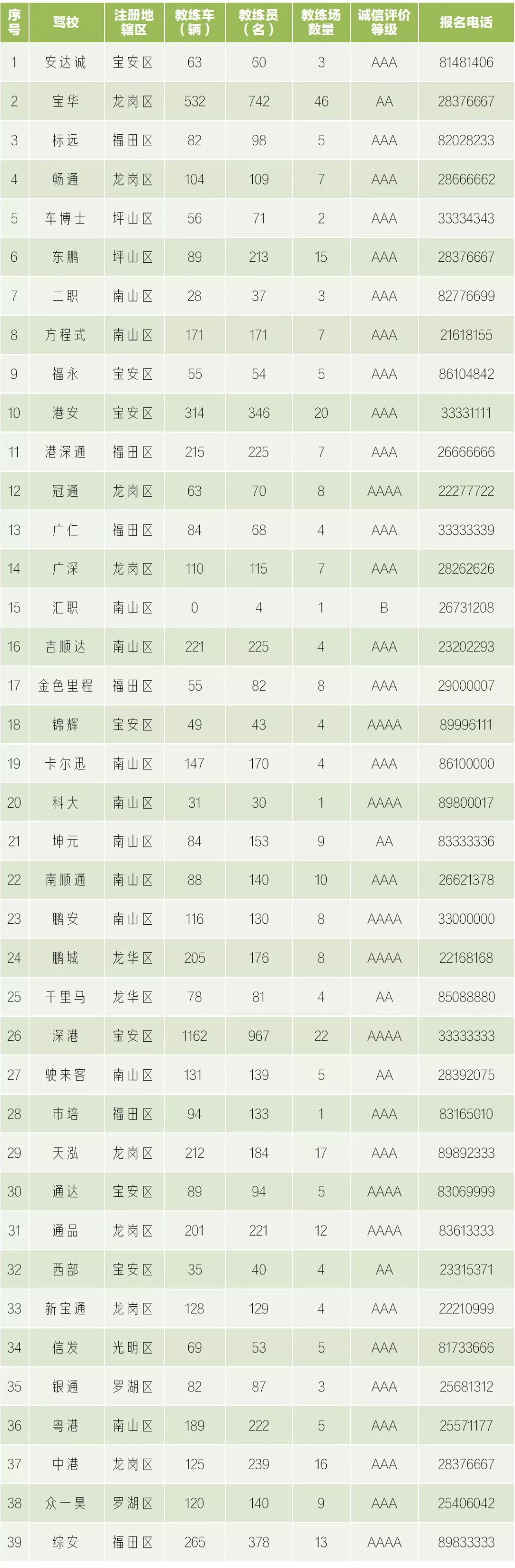 目前,我市合法注冊經(jīng)營的駕校有以下39家