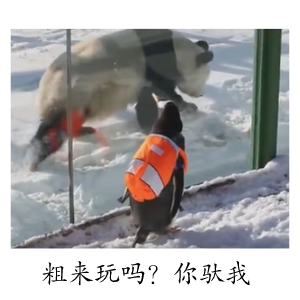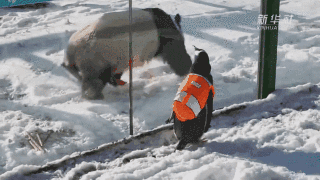 前幾天,一只企鵝坐火車到亞布力景區,和兩只大熊貓“面基”。