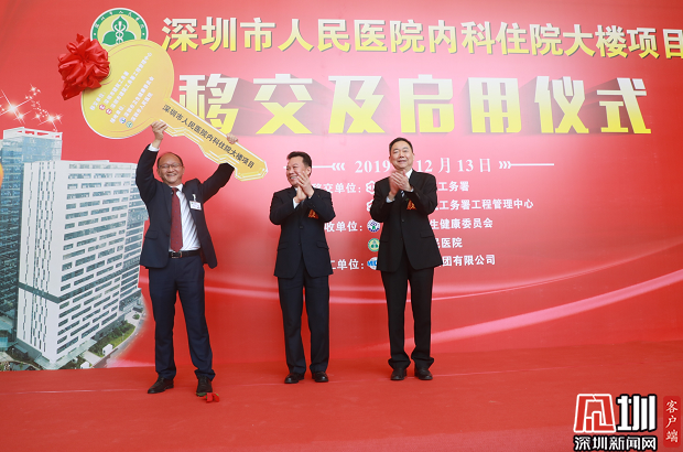 見圳客戶端·深圳新聞網2019年12月13日訊(見圳客戶端·深圳新聞網記者 劉夢婷)12月13日上午,深圳市人民醫院內科住院大樓項目竣工移交儀式在內科大樓首層大堂舉行,深圳市副市長吳以環,深圳市建筑工務署署長喬恒利、副署長黃旭,深圳市衛生健康委員會副主任吳兵,深圳市人民醫院院長邱晨、黨委書記葉秀峰,醫院、工務署等相關領導出席了現場。