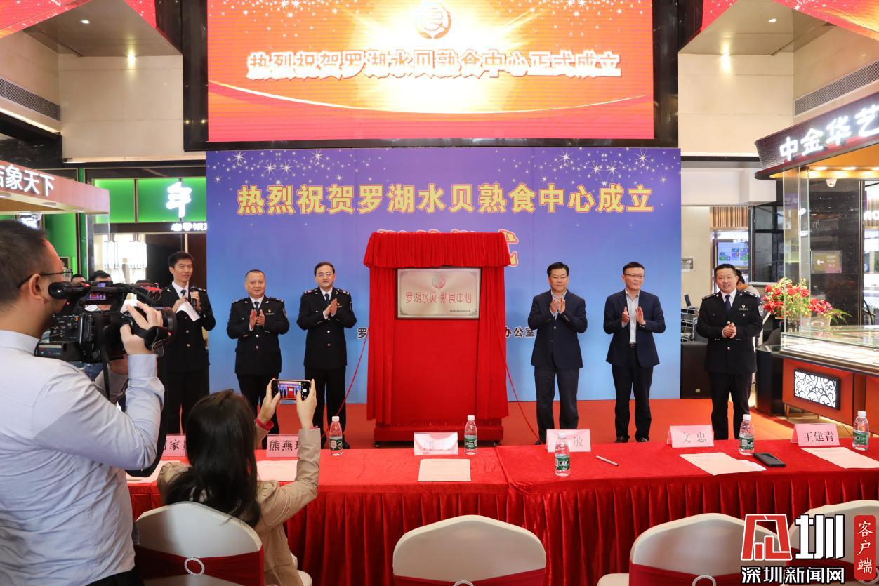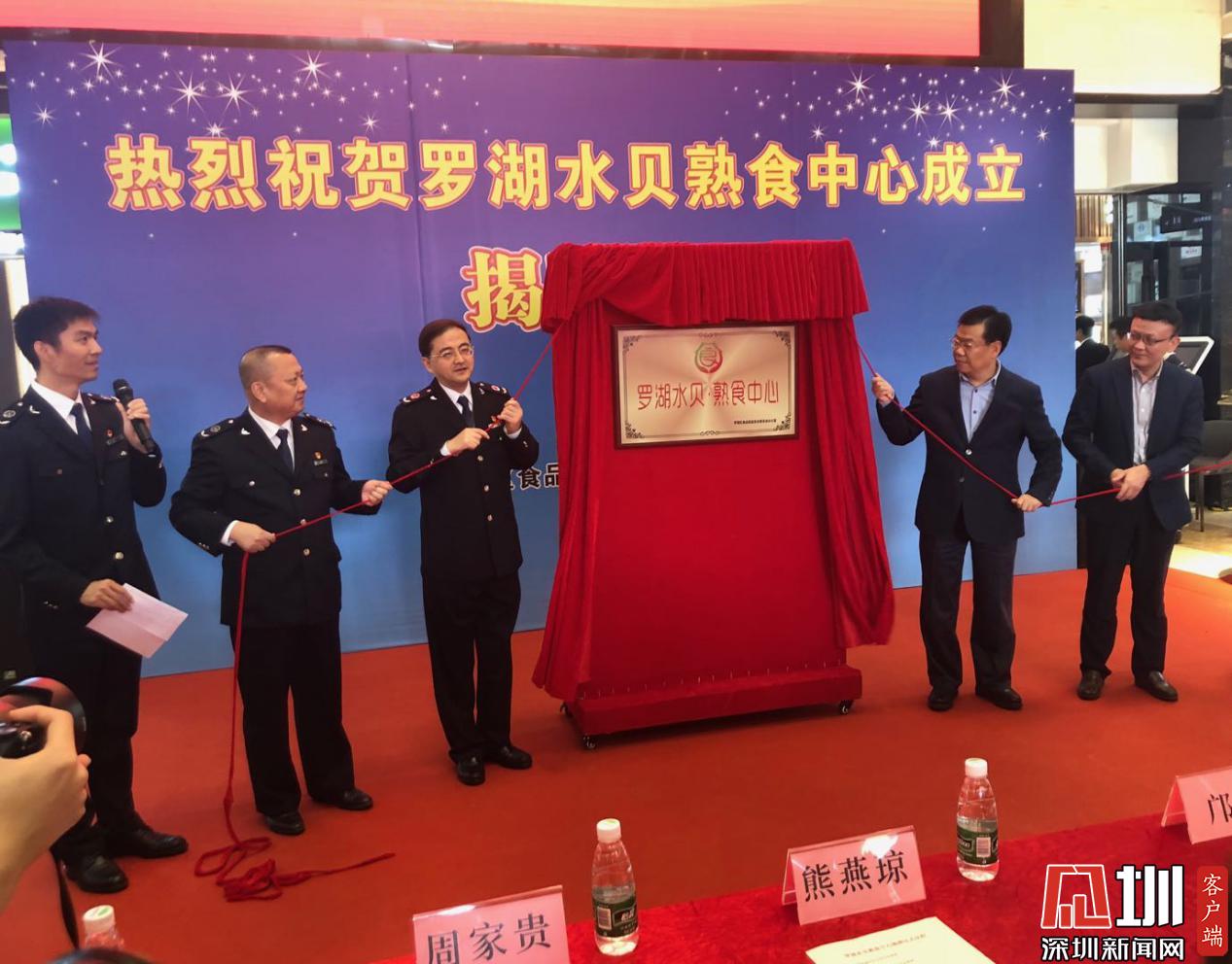 黃敏副市長、市市場監管局局長鄺兵、羅湖區副區長文忠及深圳市市場監管局、羅湖區政府有關負責同志為羅湖水貝熟食中心揭牌