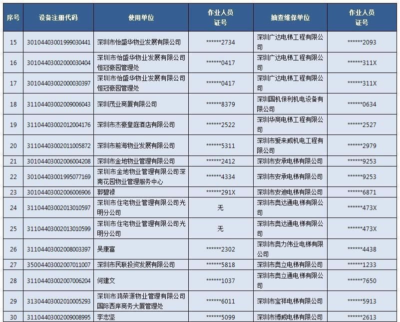 深圳特區(qū)報2019年12月13日訊 根據(jù)《深圳經(jīng)濟特區(qū)特種設(shè)備安全條例》第五十條規(guī)定及《深圳市市場監(jiān)督管理局2019年電梯維護保養(yǎng)質(zhì)量監(jiān)督抽查工作方案》(深市監(jiān)〔2019〕180號印發(fā))安排,深圳市市場監(jiān)督管理局組織開展了電梯維護保養(yǎng)質(zhì)量監(jiān)督抽查工作,隨機抽查了5015臺電梯的維護保養(yǎng)質(zhì)量,涉及電梯維護保養(yǎng)單位321家。