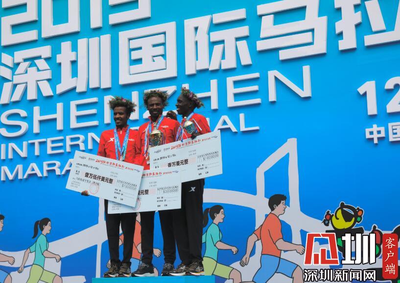 全程男子冠軍Tadese Tola Woldegeberel和第二名獲獎(jiǎng)?wù)邠肀А?/p>