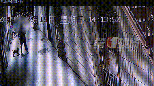 隨后,范先生找到物業管理處調取周邊監控,發現在當天下午2點13分左右,一名藍衣女子牽著一只小狗走到這個路口,沒過多久,樂樂也跟著跑出來,女子隨即蹲下將樂樂抱走。