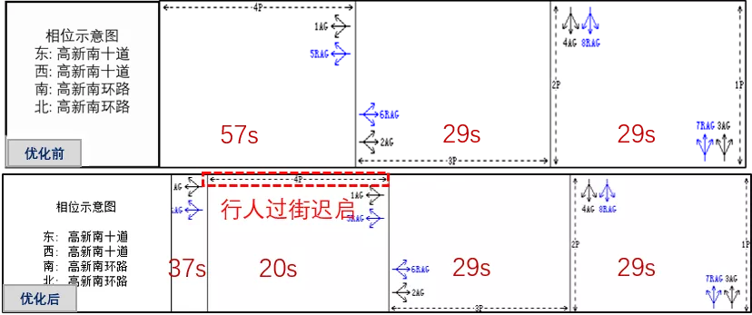 晚高峰優化前后配時方案