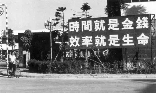 1982年,蛇口豎起“時間就是金錢,效率就是生命”的標(biāo)語牌。來源:深圳特區(qū)報江式高攝