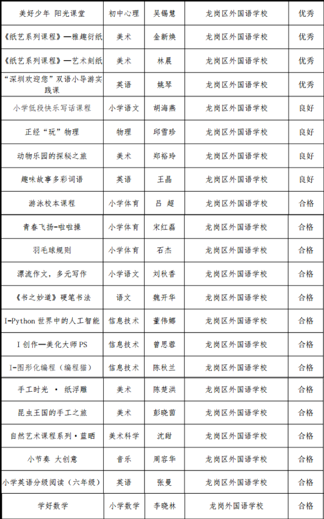 深圳特區報2019年12月30日訊 近日,龍崗區第九批校本課程名單公布,全區共160本課程入選,龍外22門區級校本課程上榜,獲批課程總量全區第一,其中《雅趣衍紙》等4門課程被認定為“優秀”等級。這是繼去年21門課程獲評區級校本課程的又一大豐收,彰顯強大的課程建設能力。