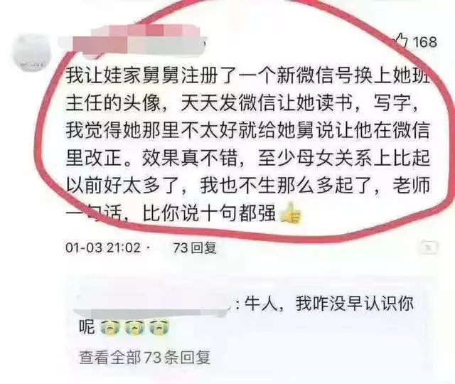 “牛人,我咋沒早點認識你呢?”“人才啊”……此奇招一出,家長們紛紛感嘆。也有家長擔心:“萬一穿幫了,對孩子傷害很大,家長信用大打折扣!”