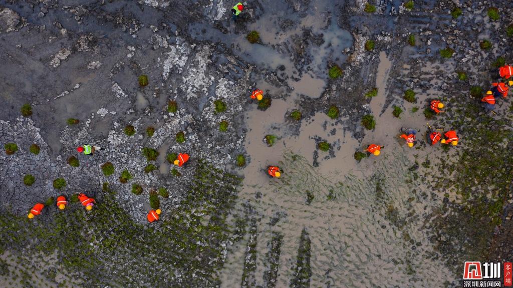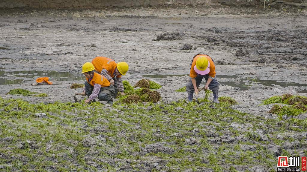 東、西、北湖水生植物人工種植,逾百人隊伍連續奮戰十天,完成三個湖的種植目標。