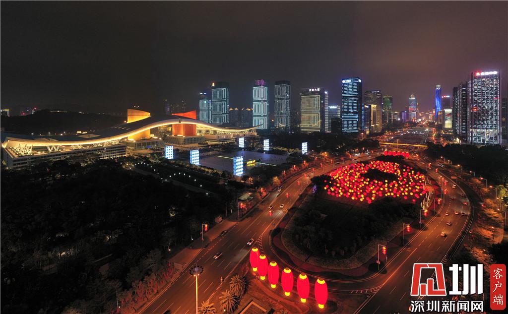 在重要區域設置迎春燈光小品,其中,在深南大道水晶島東西兩側制作了12個巨型紅燈籠,高10米,直徑4.5米,渾圓火紅的巨型燈籠寓意著萬家團圓,福運連連。