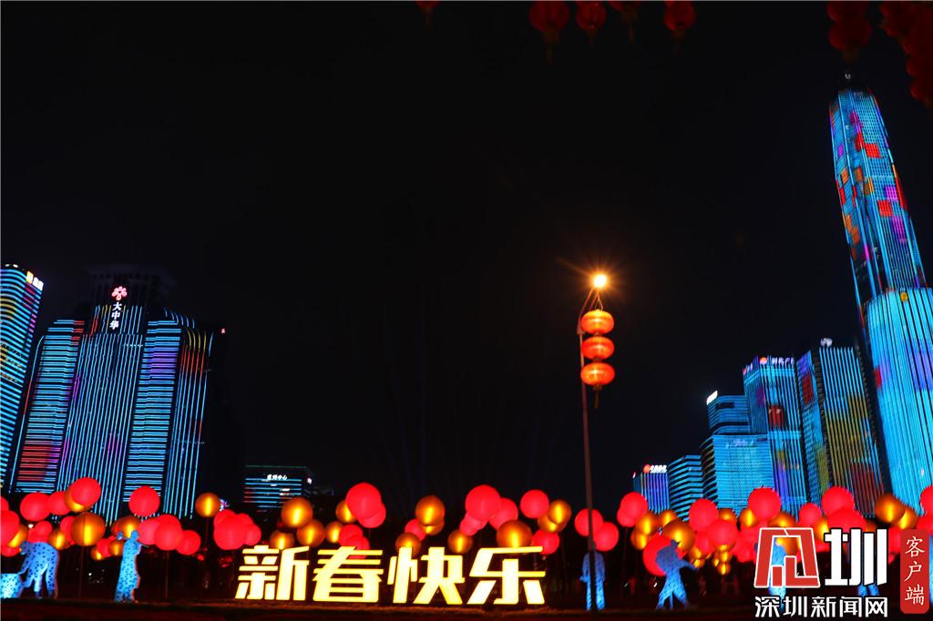 在深南中路(上步路-紅嶺路)設置節慶燈飾;利用現有樓宇媒體立面,配合福田、南山及寶安區主題燈光表演播放春節氛圍動畫;在各區其他樓宇媒體立面以及LED屏幕播放迎春氛圍視頻,營造其樂融融的歡樂景觀。