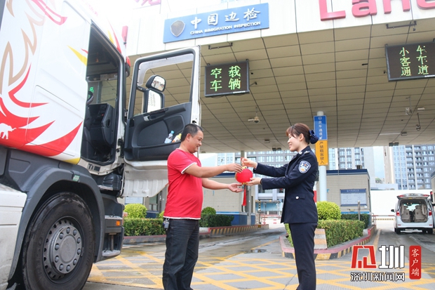 沙頭角邊檢站特別拍攝春節宣傳片,在口岸多個場地播放,營造“年”的氛圍,為出入境旅客送上小燈籠、“福”字等小禮品,與旅客在執勤現場合影,并當場打印出照片贈與留念,讓每一位歸家的游子第一時間感受到祖國的溫暖和春節的幸福。