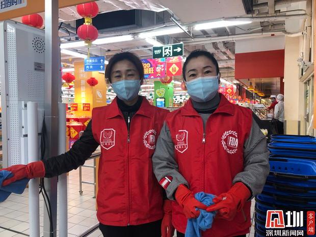 “其實家里人知道后也不贊成我們這個時候來做志愿者,畢竟也有點擔心嘛”于文平對記者說:“我們作為一個小市民,對國家來說大的貢獻可能談不上,但是因為我喜歡深圳這座城市,所以我決定要出一份力,做一些力所能及的事,過年期間能讓大家吃上安心的食品,來購物的時候能用上消毒過的購物車、購物籃,我也覺得很開心。”