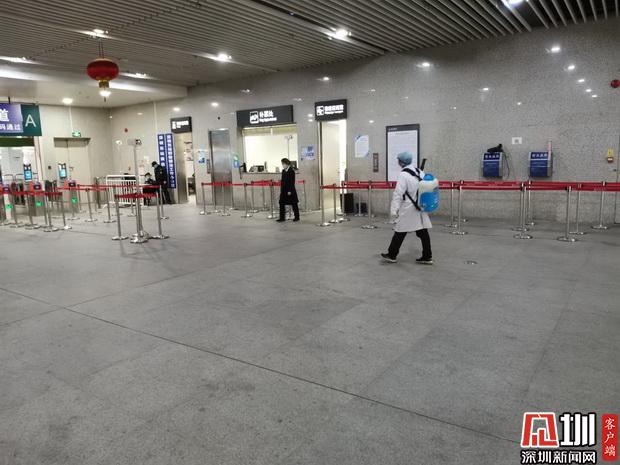 深圳火車站工作人員對候車室、站臺等區域進行消殺。