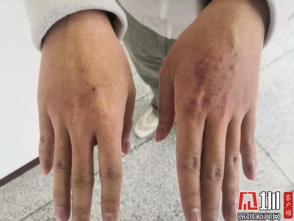 反復(fù)手消毒和長期戴手套后,傷痕累累的手。