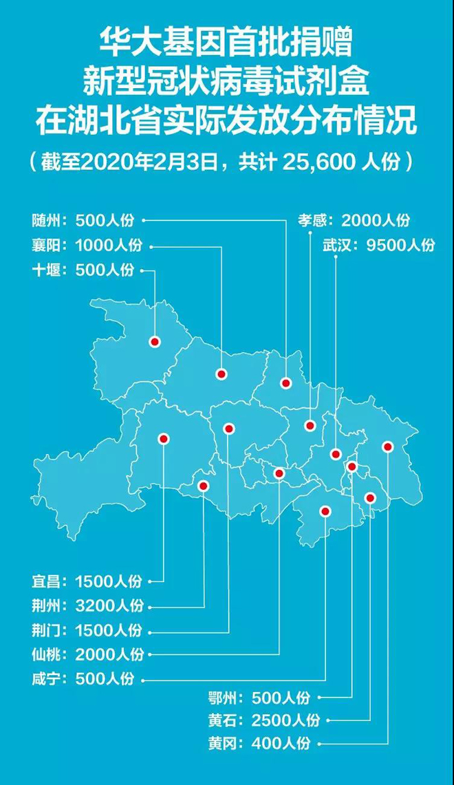 見圳客戶端.深圳新聞網訊(記者 鄭創彬)2月5日,記者獲悉,華大基因首批承諾向湖北地區捐贈的2萬人份新型冠狀病毒試劑盒(每盒50人份),實際已發貨到位2.56萬人份。其中,武漢市發放9500人份,湖北(非武漢地區)發放1.61萬人份。目前,針對湖北地區的試劑盒捐贈仍在進行中。