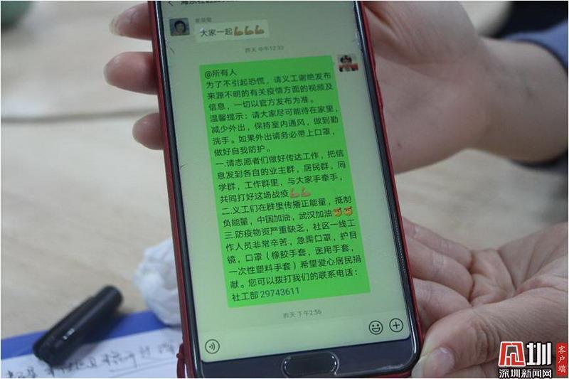 早前,吳麗在海樂社區(qū)肺炎疫情防控義工微信群發(fā)送的有關(guān)疫情防控工作的消息。