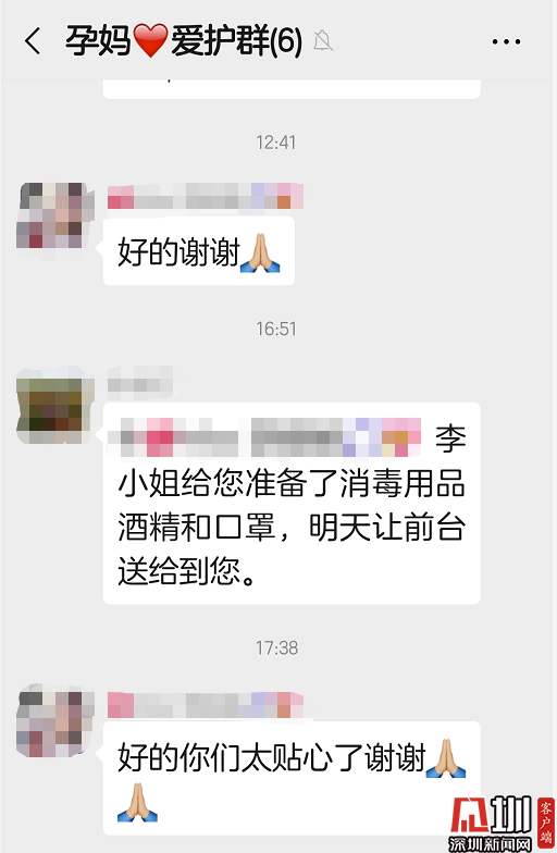 在酒店互助觀察群里,許少瓊了解到來自疫情發(fā)生地的李女士的情況,很重視,立刻與李女士取得聯(lián)系,在寬慰她積極樂觀面對疫情,安心接受觀察的同時,迅速組建了“孕媽愛護群”,群里有社康醫(yī)生、社工、社區(qū)工作人員,確保與李女士溝通順暢,保障她的需要和問題得到有效地解決。許少瓊談到,“疫情當(dāng)前,隔離不隔愛!我們要用社區(qū)溫度去溫暖和陪伴這位孕婦,讓她身心健康愉悅地在老圍社區(qū)度過14天的觀察期。”