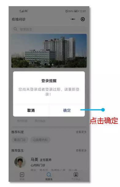 方式一:通過“找醫生”界面查找醫生,發起問診咨詢: