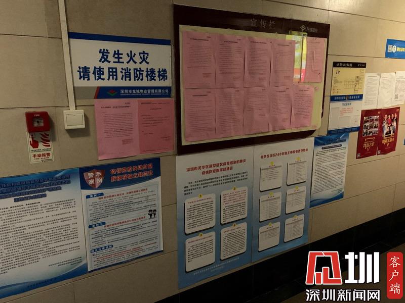 龍華龍悅居三期每一棟兩個單元樓下都貼有相關疫情通知和告示。