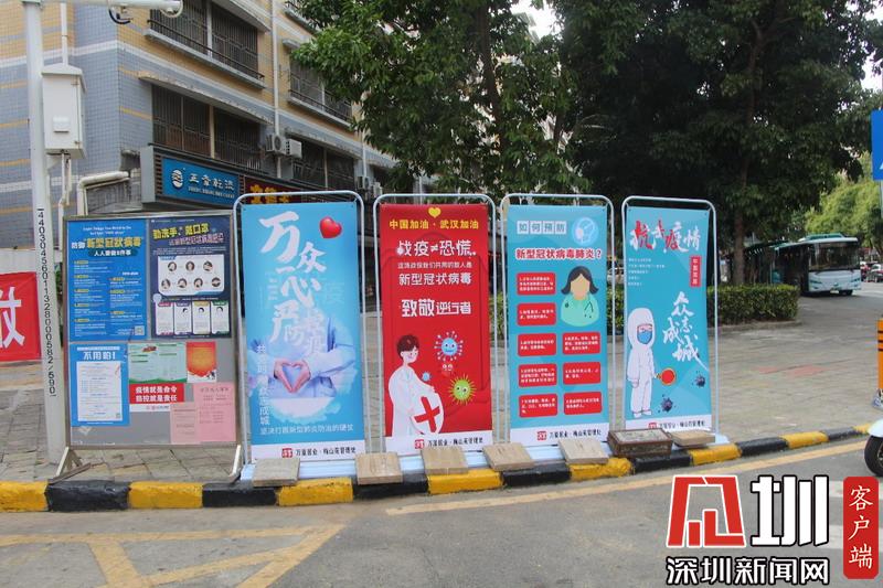 福田梅山苑小區門口陳列著關于疫情防控的告示。