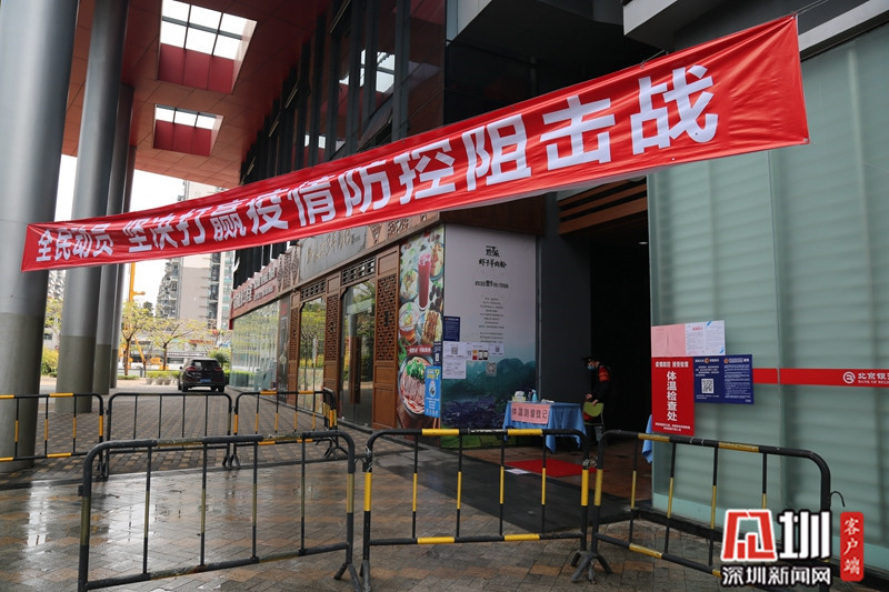 進(jìn)大門,登記信息、測體溫,才放通行,出門還要再測體溫;電梯間備有專門的抽紙,電梯外按鈕由保鮮膜隔開;大部分通道和出入口已經(jīng)封閉,大門上張貼著關(guān)于疫情的提示;疫情防控知識的海報隨處可見;鮮紅的防疫宣傳條幅十分打眼;進(jìn)出人人佩戴口罩;園區(qū)內(nèi)的龍崗區(qū)熟食中心大門緊閉;中午時分不少企業(yè)員工提著打包的食物回公司;不時有雙手拎滿外賣、帶著口罩和防護(hù)帽的送餐人員在園區(qū)內(nèi)快步行走……這些都是2月14日上午記者在龍崗天安數(shù)碼城看到的直觀印象。