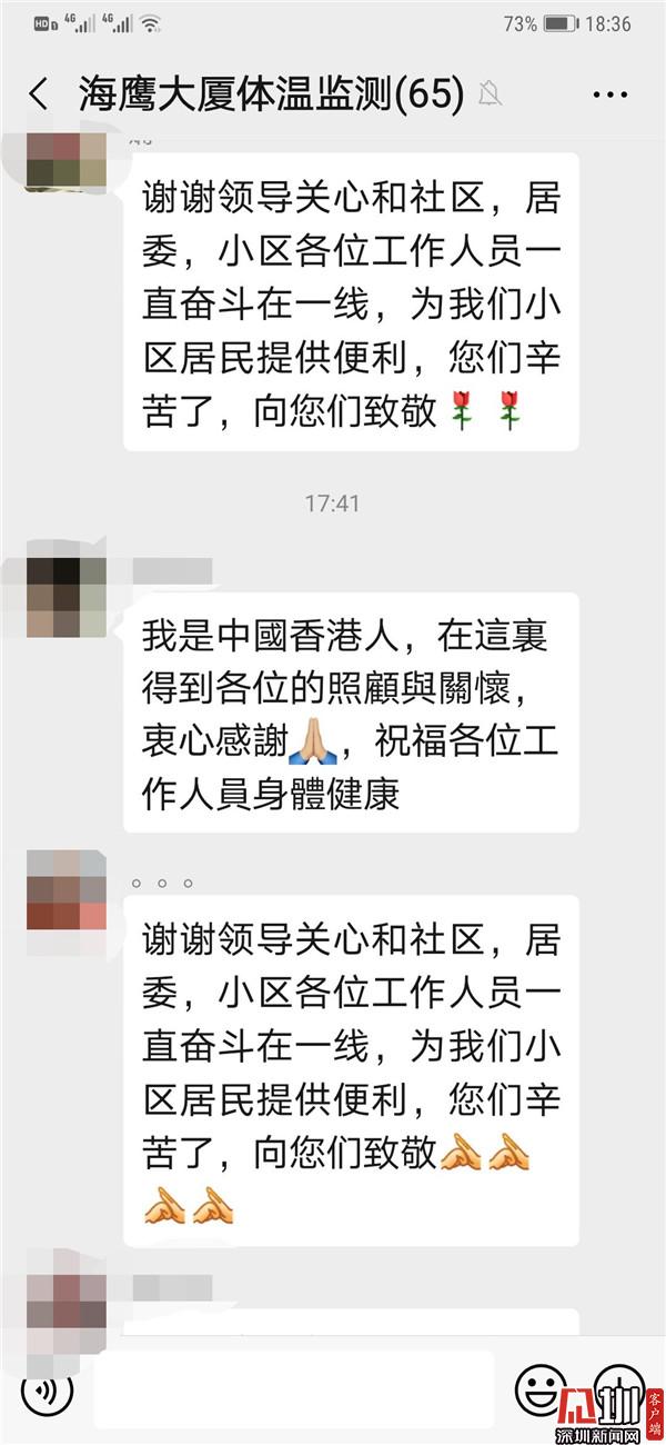 此外,在隔離期間,為方便與居民及時(shí)溝通,保障他們居家生活所需物資,東曉社區(qū)還專門建立了微信群,隨時(shí)了解海鷹住戶的生活需要和心理變化,以便及時(shí)做好應(yīng)對,并及時(shí)向他們通報(bào)當(dāng)前防控最新進(jìn)展,盡全力保障他們的生活。