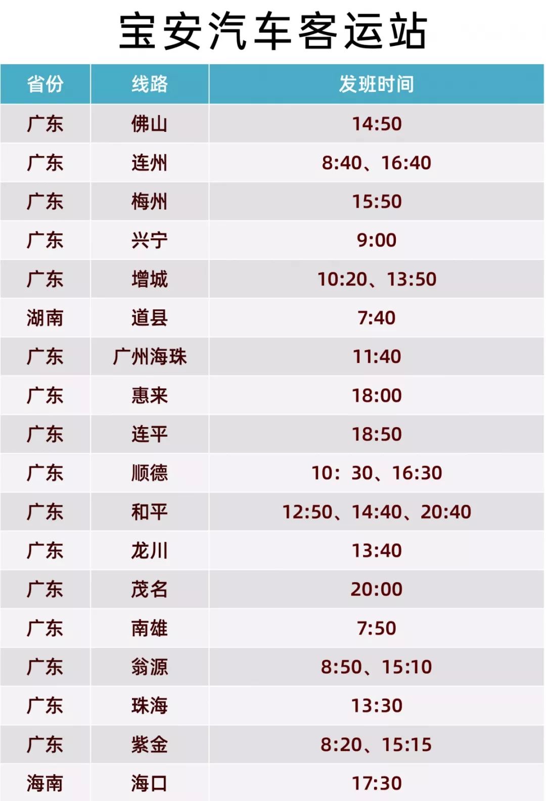 根據疫情防控工作需要,為切實保障人民群眾安全出行,深圳各汽車客運站在做好各項疫情防控措施的前提下,已經開始陸續恢復各客運班線班次,截至2020年2月25日,全市37家汽車客運站正常營運的有35家,暫時停止發班的有2家(平湖汽車客運站,新通發汽車客運站)。