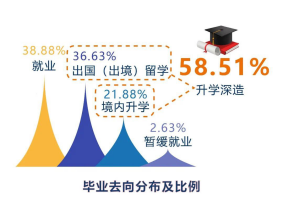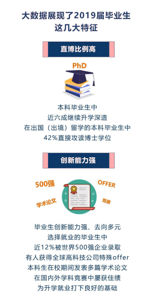 從本科畢業生升學情況來看,有超六成同學選擇了境外留學,其中四成為直博。在2019屆畢業生里,直博人數為144人,占全體畢業生近20%。