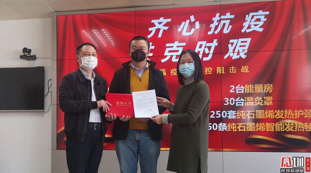 大"疫"當前,烯旺科技積極履行社會責任,向深圳市龍崗區衛生健康局捐贈防疫物資:石墨烯能量房兩臺,石墨烯溫灸罩30臺,護頸250套,小毛毯150條,共價值80萬元,用于支援全區的醫護人員疫情防控工作。