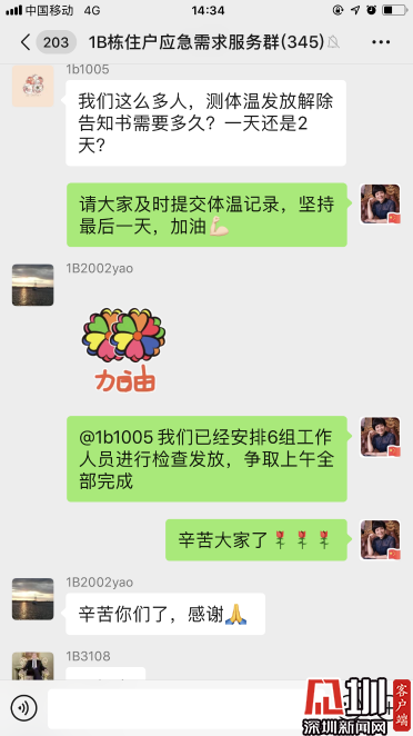 ·西麗社康醫務人員協同物業管理處,建立居家隔離的溝通微信群,住戶每天上報體溫,如有異常,安排社康工作人員上門排查,聯絡工作站人員聯系120轉診。