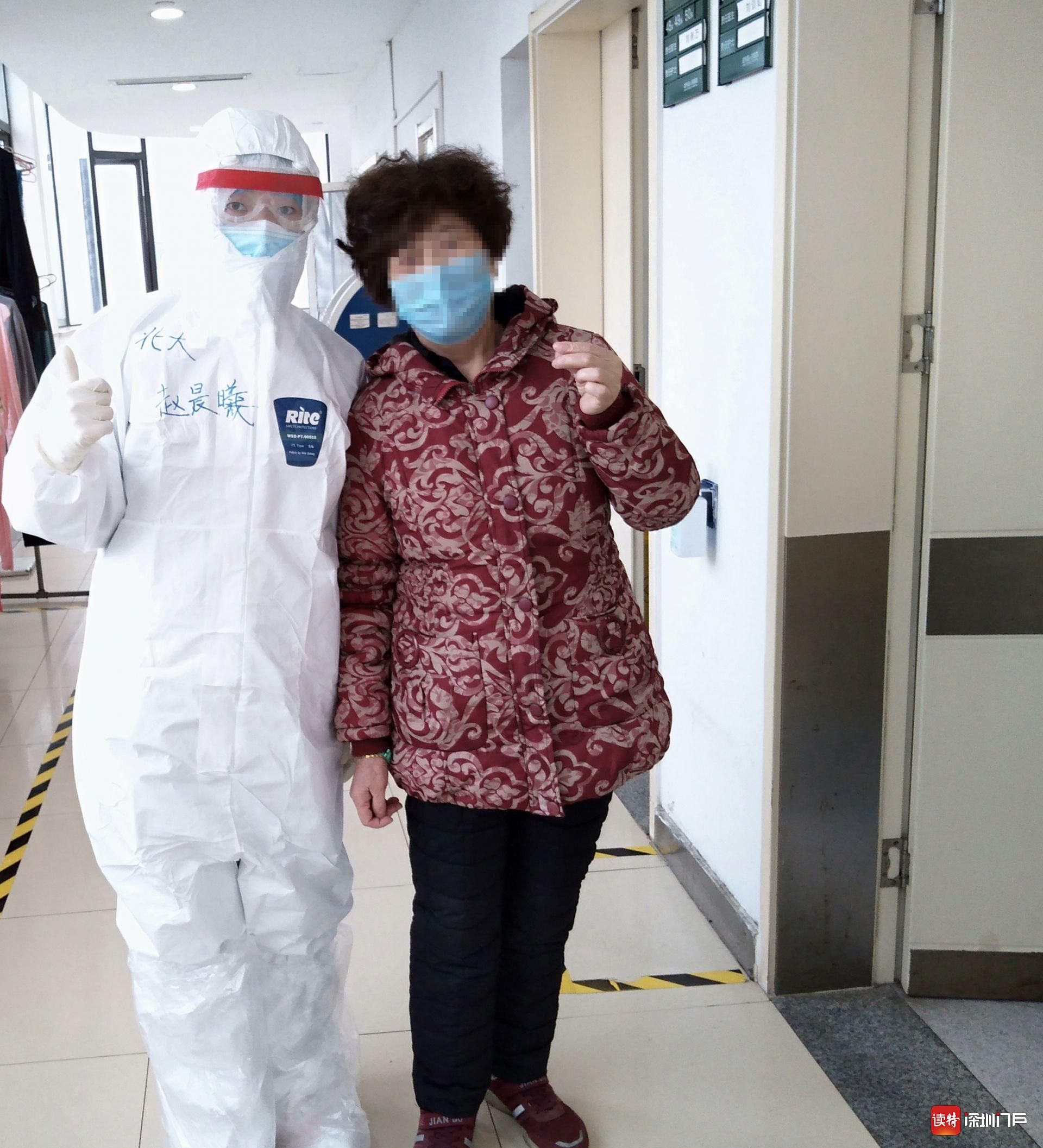 張阿姨和深圳醫療隊隊員趙晨曦在病區內合影。深圳醫療隊供圖