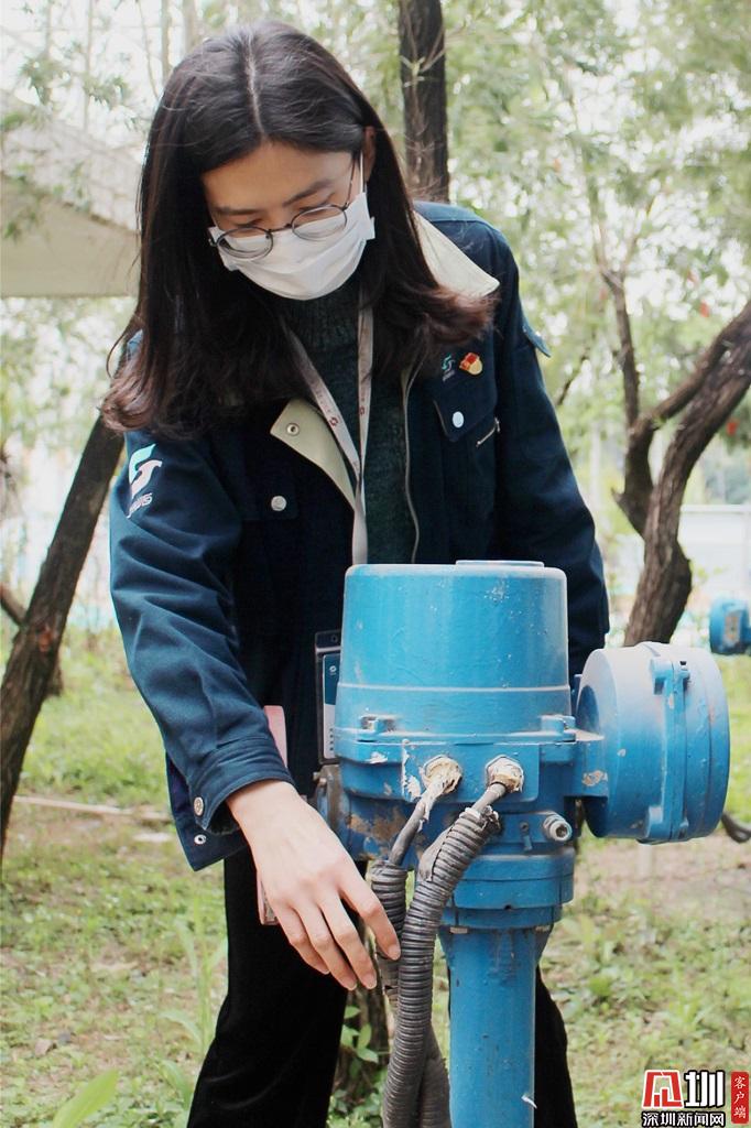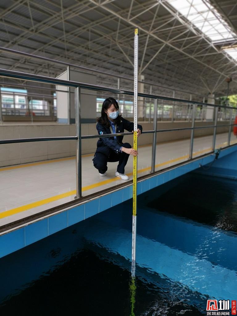 一點一滴,做到最好。每一滴水都飽含深水人的大愛,每一滴水都是深水人的莊嚴承諾。水務集團梅林水廠工程師王姝凡,正檢測炭濾料厚度變化。
