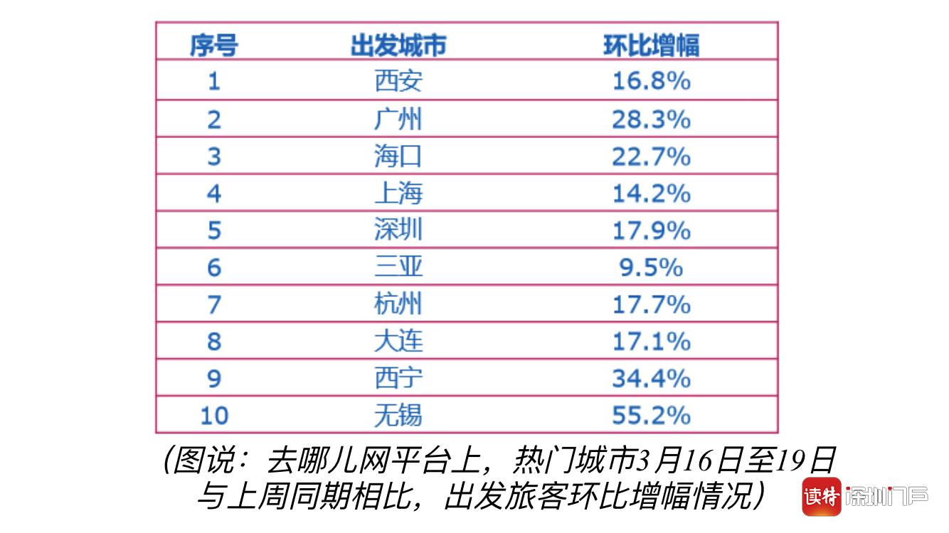 深圳特區報2020年3月19日訊 進入3月中旬,隨著各地有序復工復產,旅游行業也出現回暖跡象。去哪兒網數據顯示,本周五一假期搜索量環比上周增長76%。
