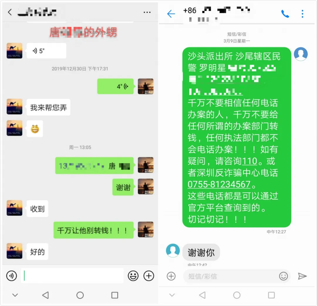 “有些事主被騙子‘洗腦’后,電話里表示相信我們,但是轉頭又去給騙子轉錢了。徐女士不在深圳,所以我們為了確保她真的擺脫騙局,又讓她丈夫給她打電話,還讓房東幫忙撥通視頻通話,我一點點給她講解騙子的詐騙手段,她這才幡然醒悟,沒有給騙子轉錢。”卿紅鈺說道。