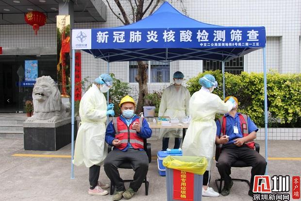 地鐵8號線二期工地內對工人進行新冠肺炎核酸檢測篩查。
