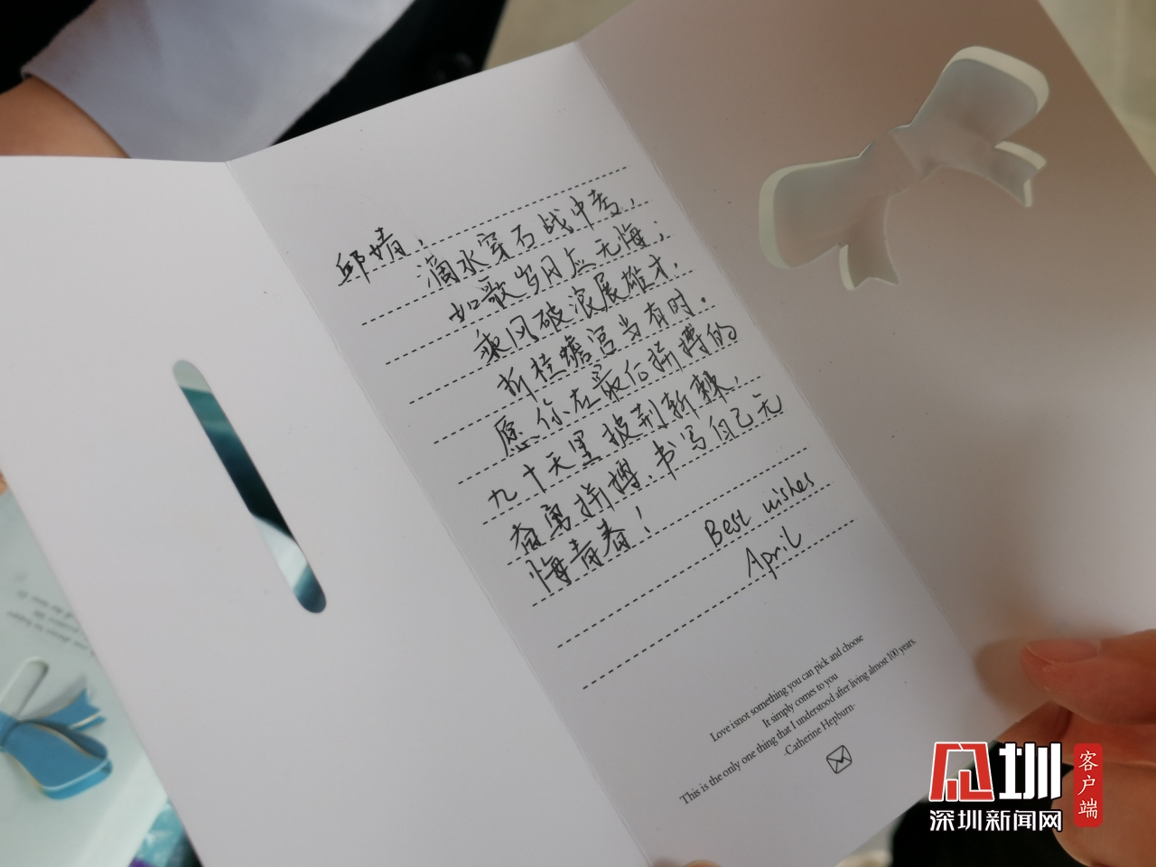 龍華區外國語學校邱婧同學收到老師祝福卡(鄭瑞欣 攝)